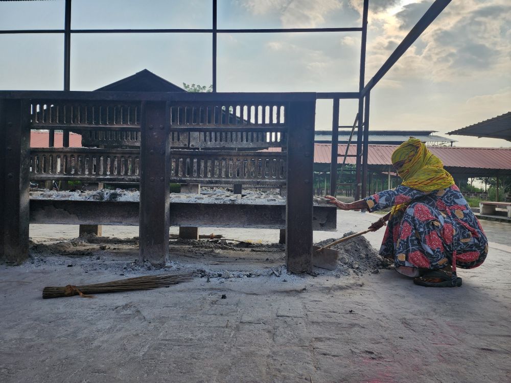 वह एक चिता तैयार करती हैं। फिर दूसरी, फिर तीसरी। अंतिम संस्कार के बाद राख साफ करती है। अगली अर्थी के आने तक वह पानी से प्लेटफॉर्म धो देती है।