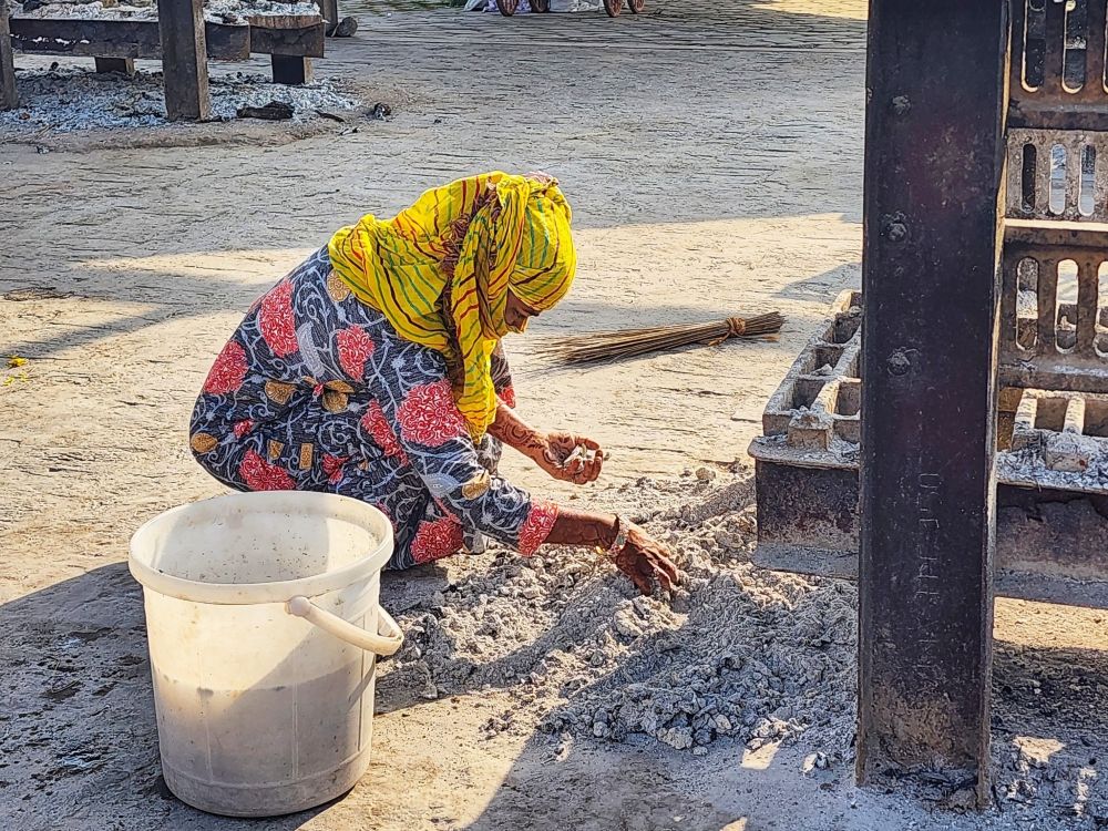 वह एक चिता तैयार करती हैं। फिर दूसरी, फिर तीसरी। अंतिम संस्कार के बाद राख साफ करती है। अगली अर्थी के आने तक वह पानी से प्लेटफॉर्म धो देती है।