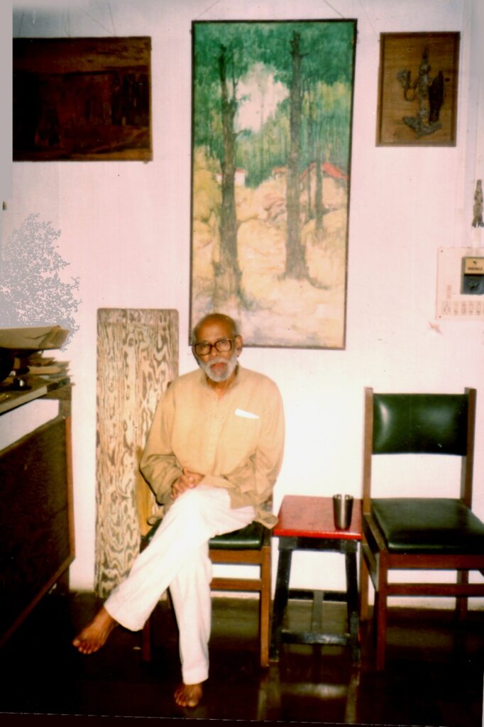 उनसे कला पर बात करता रहा। उनके विचारों को जानता रहा। उन्होंने हर चीज समझाई। बातों को बीच में रोक कर वे एक स्लेट लेकर आए। स्लेट पर अक्षर तथा अंकों से चित्र बना कर दिखाने लगे। गुरुजी के व्यक्तित्व और कला ज्ञान से मैं अभिभूत था। उस पहली ही मुलाकात ऐसा लगा मानो मेरा जन्म सार्थक हुआ। गुरुजी से भेंट में एक नई कला दृष्टि मिली। थोड़ी में गुरुजी की पुत्रवधु और पोत्री भी कक्ष में आए। हमने साथ ही चाय भी।